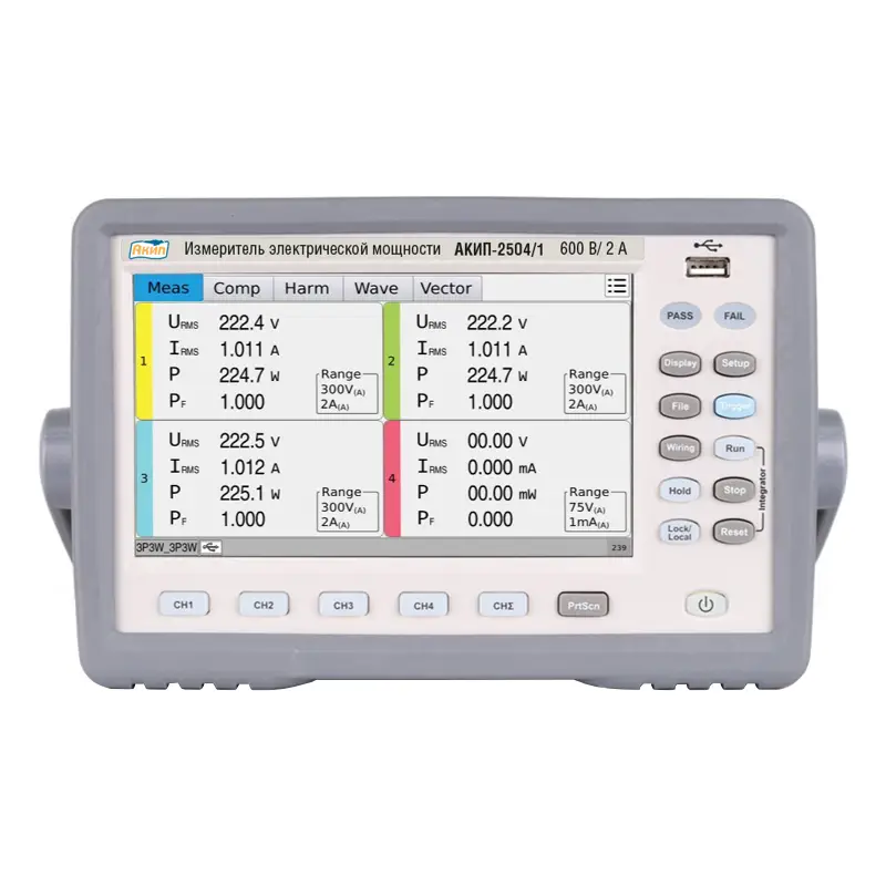 Измеритель мощности АКИП-2504/2 представляет собой современный высокоточный прибор, предназначенный для анализа параметров электрической мощности в однофазных и трехфазных сетях. Этот прибор поддерживает пять различных схем подключения, что делает его универсальным решением для измерений в самых разнообразных условиях эксплуатации.
