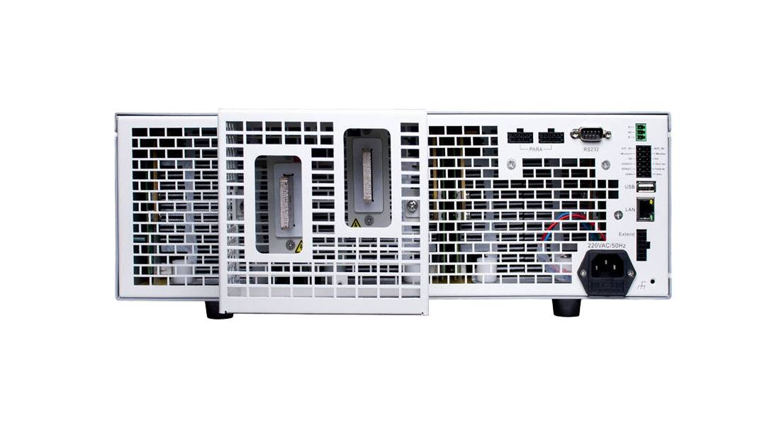 Максимальная мощность устройства составляет внушительные 30 кВт, что делает его подходящим для испытаний мощных источников тока. Один канал с предельными значениями 600 В по напряжению и до 2100 А по току обеспечивает совместимость с современными промышленными источниками энергии, включая блоки питания, аккумуляторные батареи, силовую электронику и системы электропитания электромобилей.